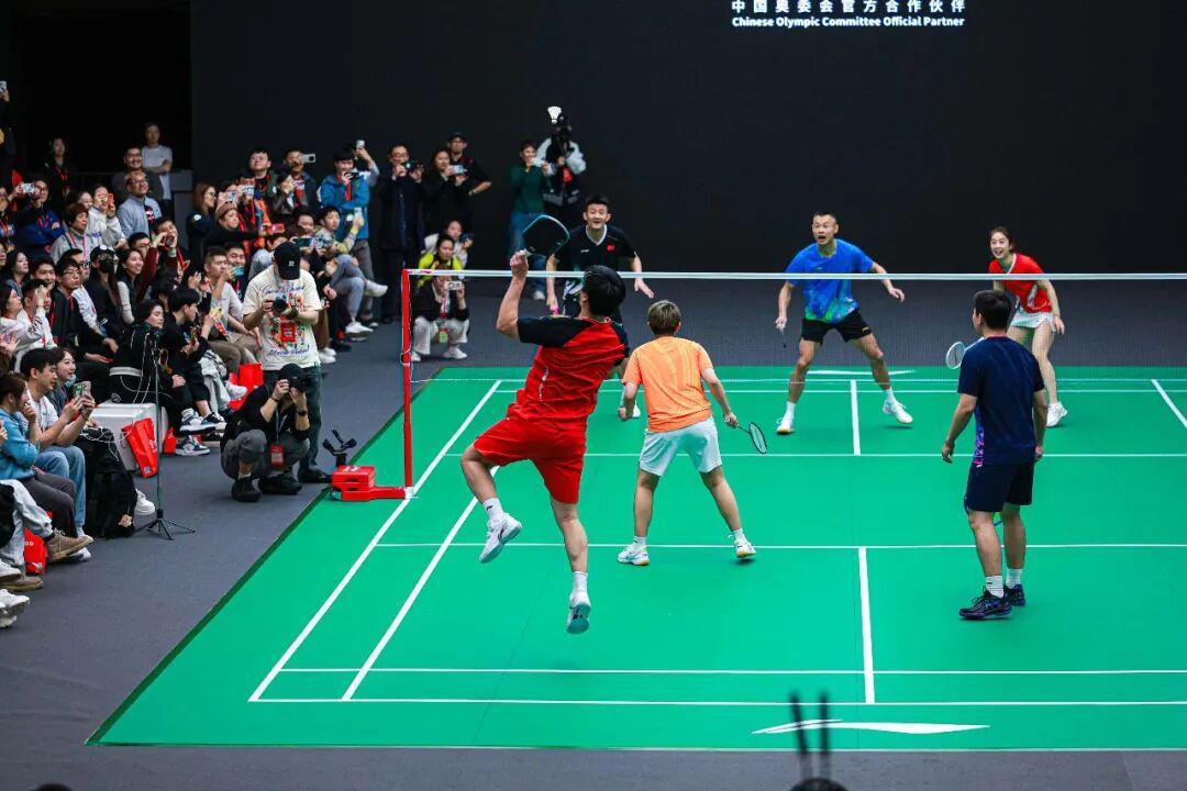订货会上,傅海峰、谌龙分别担任队长,携周昊东、杜玥与徐晨、王适娴组成两队,带来一场趣味十足的3V3表演赛。比赛中,每逢8分就有队员换上网球拍或匹克球拍继续比拼,既呼应了李宁羽网匹事业部多项目协同发展的布局,也次次点燃现场气氛。